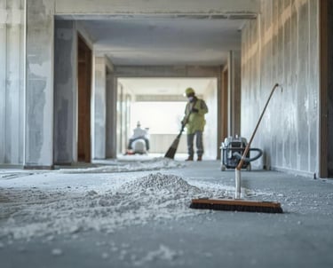 Service de nettoyage après travaux, éliminant poussière et débris pour rendre vos locaux impeccables et prêts à l’usage.